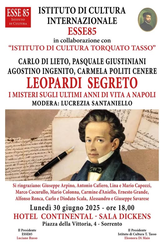 Lunedรฌ 30 giugno, alle ore 17, si terrร un importante incontro letterario presso il Grand Hotel Continental di Sorrento. In occasione del 227ยฐ genetliaco di…